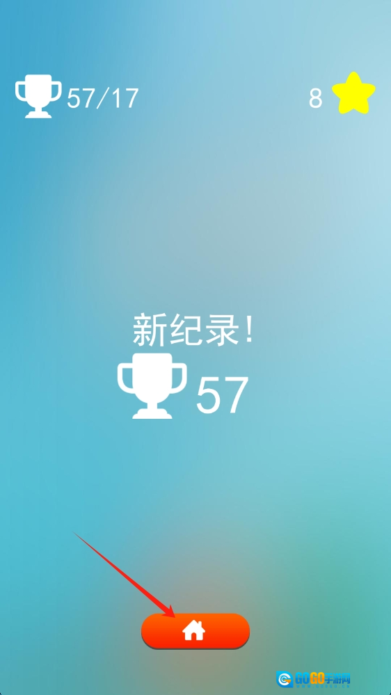 游戏结束后,点击房子图标回到主页,查看奖杯和星星的数量,持续挑战新纪录,提高游戏成绩。