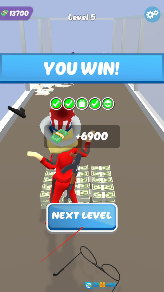 击倒所有敌人后,你就能得到丰厚的钱币奖励。这些获得的钱币可以在主页用来提升躲避子弹的时长和子弹的数量。