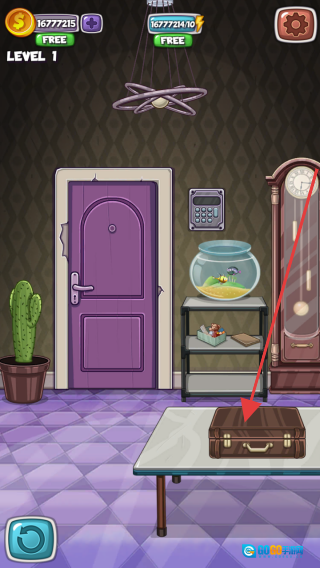 在游戏的第一关场景里,找到箭头所指的箱子并点击它,试着把箱子打开,从中找寻能派上用场的线索与道具,这些东西会帮你房间里的谜题,让你顺利逃出去。