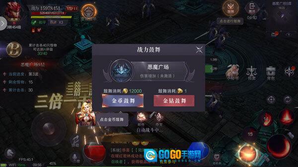 在副本中,玩家能够通过消耗金币或者金钻来进行鼓舞操作,以此提升在副本里的伤害输出。进入副本之后,玩家需要在规定的时间内击杀更多波次的怪物,这样才能得到更高的副本评分。而副本结束时,评分越高的话,所能获得的奖励也就会越丰厚。