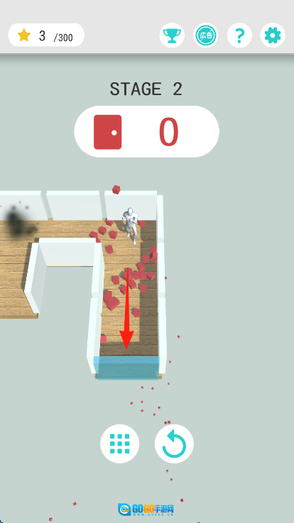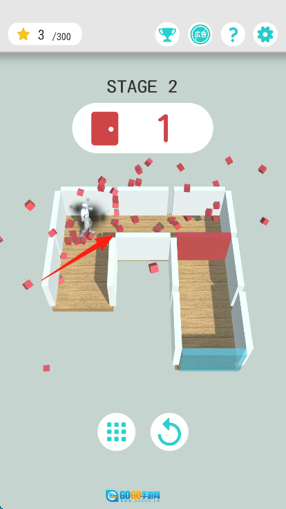 每打破一处墙体,阶段数就会从2依次递减到1再到0,直到抵达终点的蓝色区域,即可完成关卡。