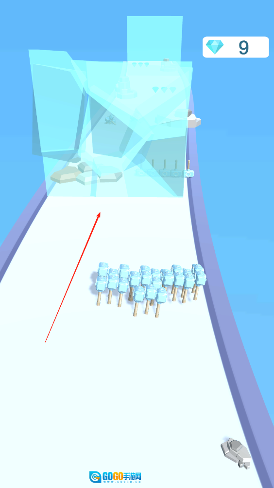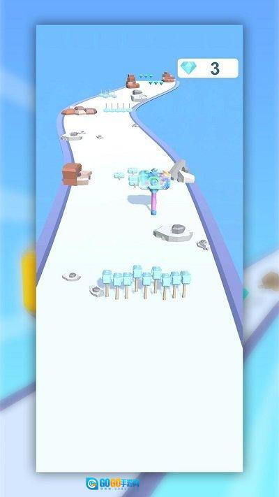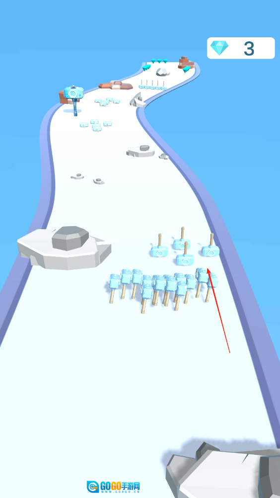 当碰到障碍物时,锤子会自动用掉一个,把屏障砸破,之后接着往前移动,继续收集锤子和钻石。