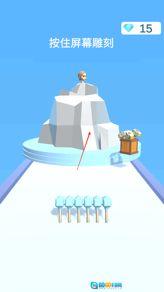 到达关卡终点后,长按屏幕对前方的石块进行雕刻,要是一次没能把所有石头凿开,就多通关几轮。