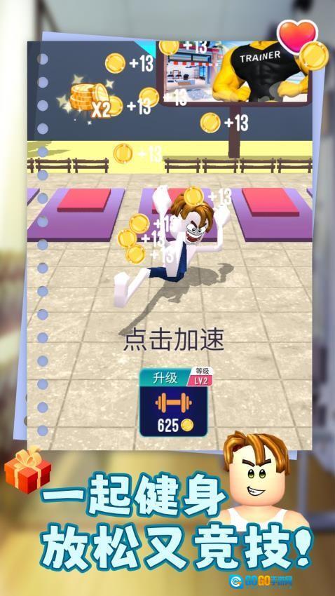 可以加入多人同台竞技的模式来一较高下,看看谁能在限定时间内完成更多健身动作。然后用比赛赢来的奖励,既能升级角色的外观造型,又能提升各项属性数值,最终打造出专属于你的顶级健身猛男形象。