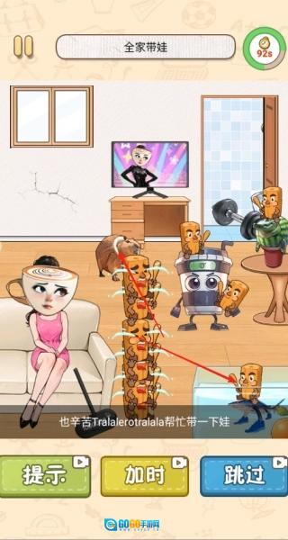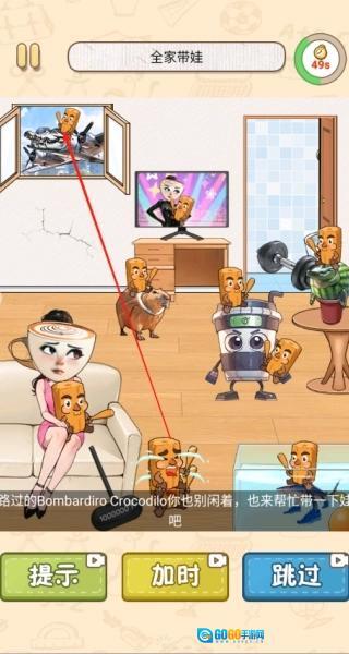 2、借助卡皮巴拉与水里的鲨鱼怪物,让它们协助照看孩子。