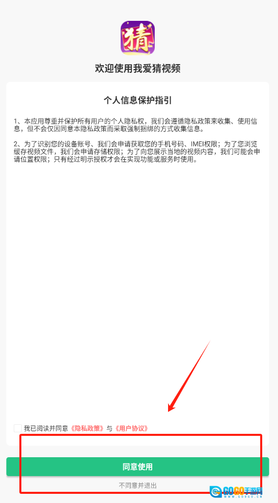 要进入游戏,需点击同意使用按钮并勾选同意隐私政策。