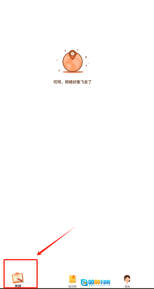 点击答题图标即可启动游戏,目前屏幕上正显示网络连接异常的提示。