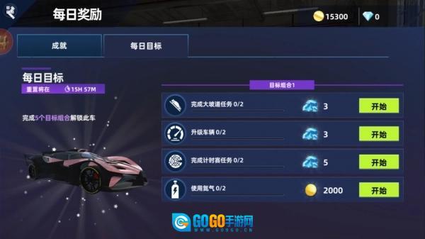 2、参与限时竞速、特技积分赛及多人对战等多种赛事模式,完成对应目标就能获取奖励。