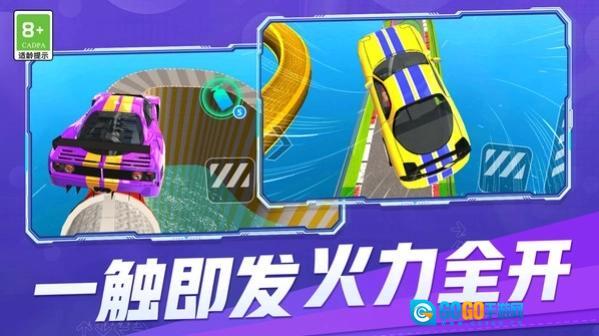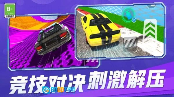 3、车辆与赛道在设计上色彩鲜明且动感十足,具有强烈的视觉冲击力,契合休闲竞技的定位。