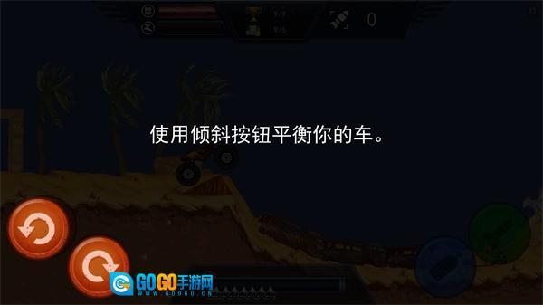 2、借助屏幕左下角的倾斜按钮,帮助你的赛车维持平衡;