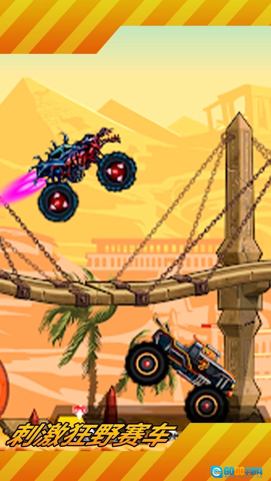 刺激狂野赛车游戏是一款超带感的横版越野赛车游戏。游戏场景设定在狂野的越野赛道,玩家操控各类高性能赛车,在坑洼不平的道路上展开激烈角逐。和传统赛车游戏不一样,这儿不讲绅士风度,没有严苛规则,只有无尽泥浆、飞扬尘土与震耳欲聋的引擎声。玩家能尽情超车、漂移、飞跃障碍,还能用武器攻击对手,让比赛嗨翻全场。