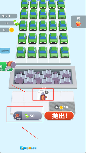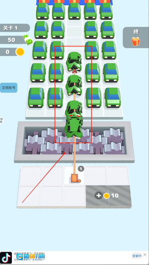 只要让钩子勾住所有车辆并抵达终点就能顺利通关,游戏过程中玩家还能把勾到的车辆送入粉碎机来获取金钱,用这些钱可以升级钩子。