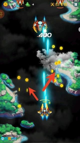 3、在成功击败敌机之后,记得收集其掉落的金币和能量道具,这些物品可以用来提升战机的攻击力、射速,或者解锁大招以增强瞬时输出能力。