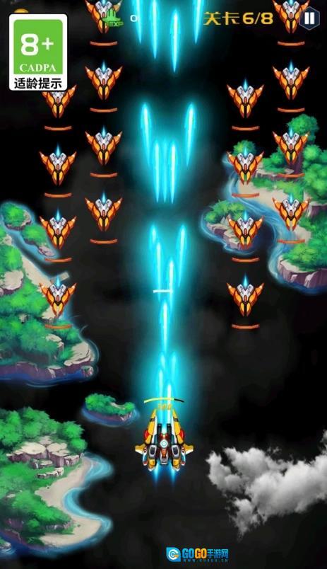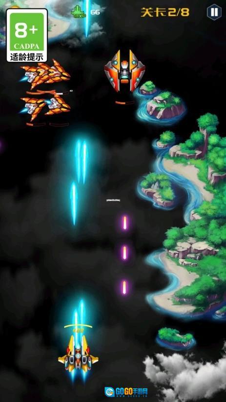 2、借助虚拟摇杆来灵活控制战机的移动,避开敌方密集的弹幕袭击,与此同时瞄准敌机不断开火进行反击。