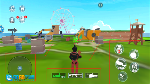 左边是移动摇杆,右侧为开火和换弹按钮,中间则是切换武器的功能键。