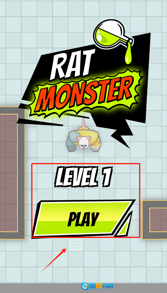 游戏的初始界面里,顶部显示着“RAT MONSTER”的标题,其中“MONSTER”是橙色字体且带有绿色边框,标题下方悬挂着一只黄色的老鼠,点击红色的“PLAY”按钮就能进入游戏。
