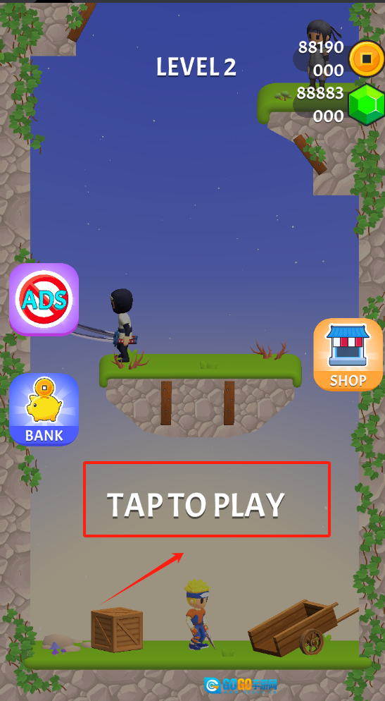 游戏关卡的界面里,顶部位置会显示当前的关卡编号“LEVEL 2”,而在界面的右上角则标注着玩家拥有的金币数量。