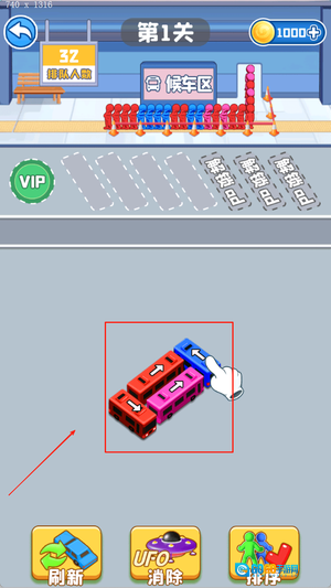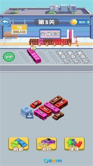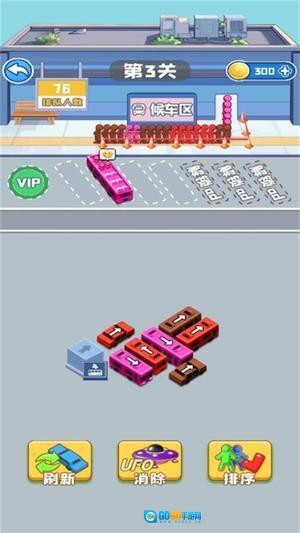 游戏开始时,你能看到停车场里车辆的摆放情况以及候车区乘客的状态,点击可以移动的车辆让它开出去,以此完成接送乘客的任务。