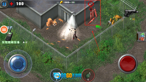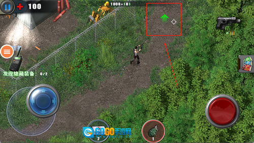 进入游戏后,点击“开始游戏”按钮,通过左侧的移动摇杆控制角色移动,右侧的按钮则用于射击操作。
