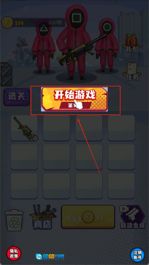 进入游戏后,把装备整理好,接着点击开始游戏,就能进入想要挑战的关卡了。