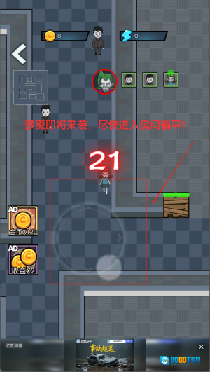 在怪物释放之前找到房间躺平赚钱。