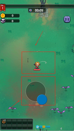 拖动屏幕下方摇杆控制角色走位。
