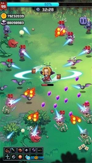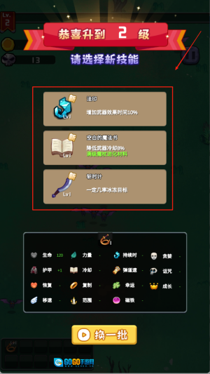 持续挑战关卡、提升等级,挑选新的技能,使自身变得更为强大。