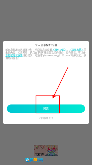 打开全民解压计划,点击“同意”。