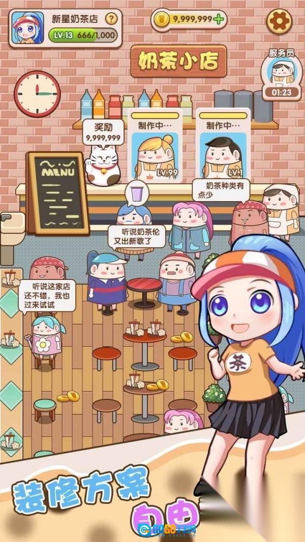 2、扩大经营规模:可以通过招募店员来拓展店铺规模,不仅能亲身参与完整的奶茶制作流程,还能自主进行店面装修,依据个人喜好打造别具一格的奶茶店风格,增强店铺的吸引力。