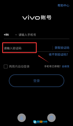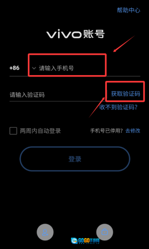 1、在输入手机号后,点击“获取验证码”按钮,以便进行vivo账号的登录准备操作。