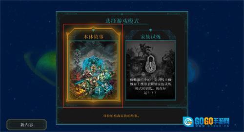 进入游戏后,玩家可在两种模式中进行选择,这两种模式分别是主线故事模式和家族试炼模式,而家族试炼模式需要玩家获取相应道具才能解锁。