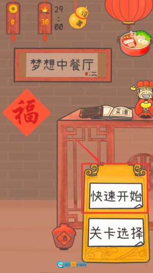 1、点击快速开始或关卡选择,进入餐厅经营模式。