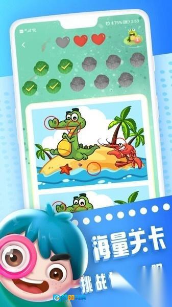 这款游戏准备了多样模式任玩家随心探索,还配备了提示功能,让大家在找不同的过程里始终保持游戏的乐趣。游戏内容充实又好玩,经典的找茬休闲玩法能带给你超棒的游戏体验,不管是什么类型的玩家都可以来试试。赶紧来考验你的观察力,尽情享受找不同的快乐吧。