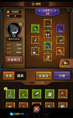在每场战斗开启前,玩家都能自由选择和搭配自己的装备,以此获取具有针对性的能力加成。