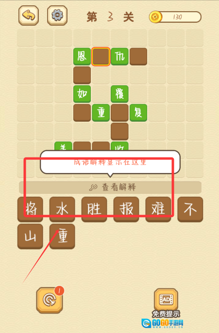 补充完成之后,可以点击查看成语释义。
