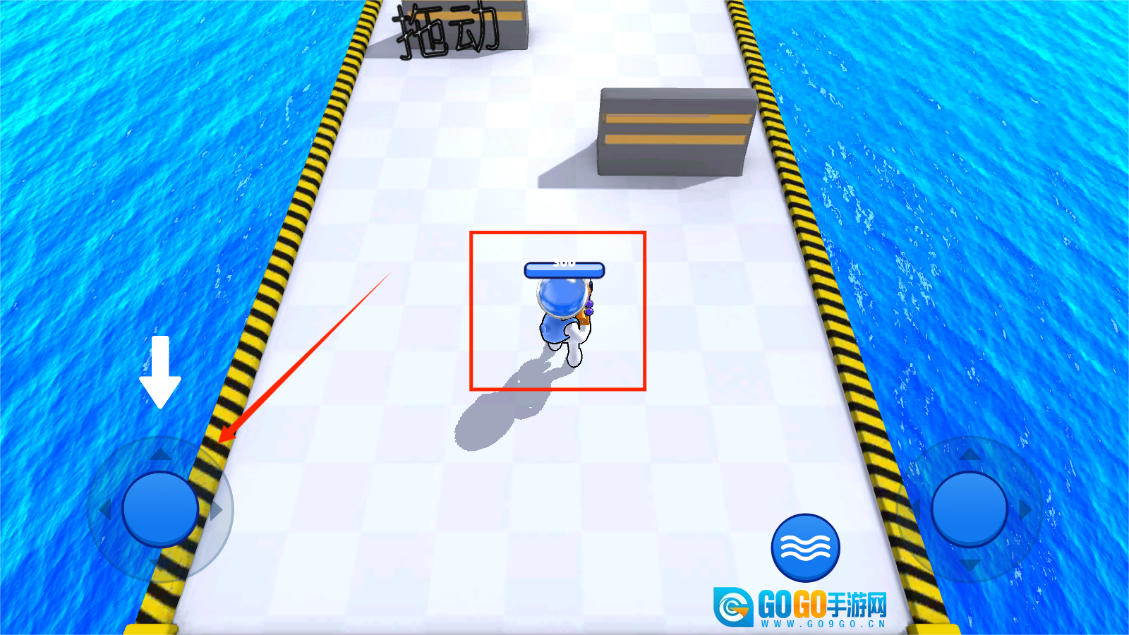 进入游戏后,可借助左下角的按钮操控角色前后左右移动。
