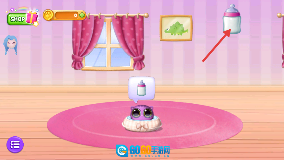 当宠物头顶显示奶瓶图标时,点击界面右上角的奶瓶按钮,即可为宠物喂食。