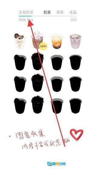 1、进入奶茶图鉴界面后,点击“MilkTea”之类的分类选项,即可收集并解锁各类奶茶配方,以此逐步完善图鉴内容。