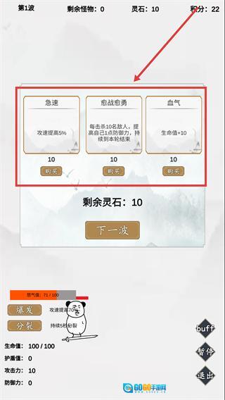 可以点击休息处购买成长天赋,向神秘人进贡能获取特性,每波战斗结束后记得购买技能,还能自由组合各类buff来制定策略。