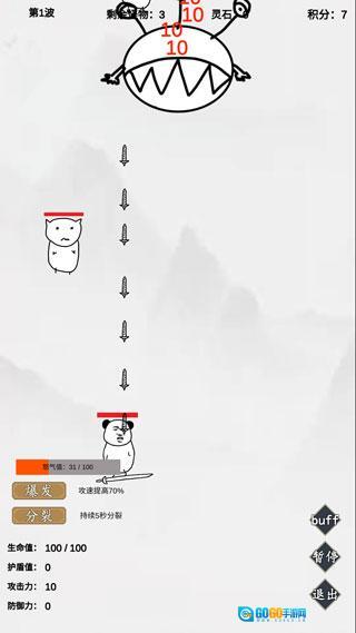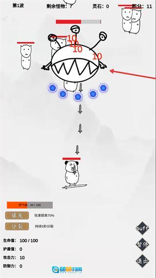 当战力逐步提升,每一次精准击溃敌人的瞬间都能带来酣畅淋漓的反馈。简约的修真美术风格下,随机生成的关卡与策略性的技能组合,让每一次尝试都充满新鲜的惊喜与满满的成就感。点击【开始游戏】按钮进入战斗场景,在初始阶段要时刻保持警惕,利用发射飞剑的方式清理小怪,以此来积累资源。
