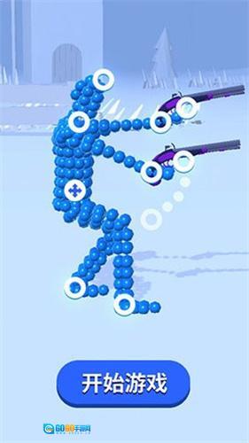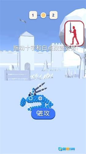 游戏以关卡挑战模式展开,玩家需拖动十字键和白点来调整角色姿势,以此进行战斗。