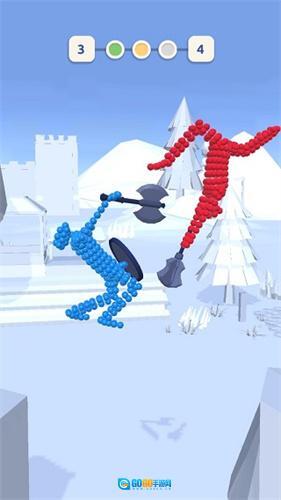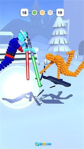 在每一关战斗开启前,玩家都可以给角色更换各式各样的武器,之后需要在关卡里尝试通过合理拖动武器的方式,让其触碰到对手,以此来赢得胜利。