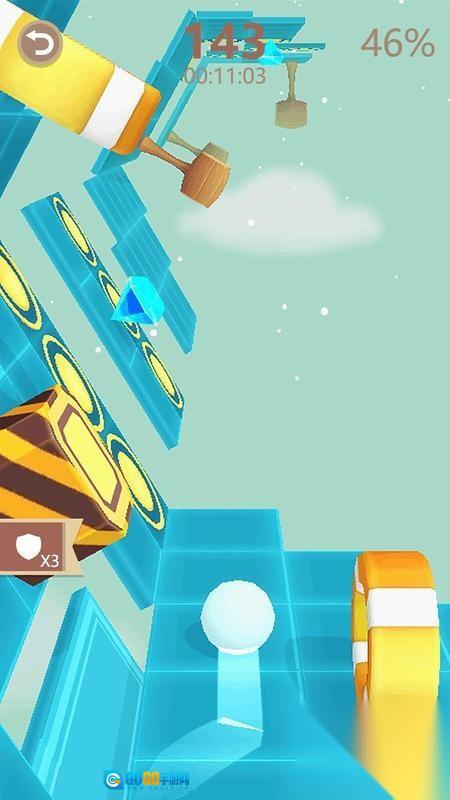滑动控制滚动:通过滑动操作控制小球在3D道路上滚动,遇到弹跳方块时自动跳跃,灵活避开障碍与开放空间,确保小球滚动过程不中断。