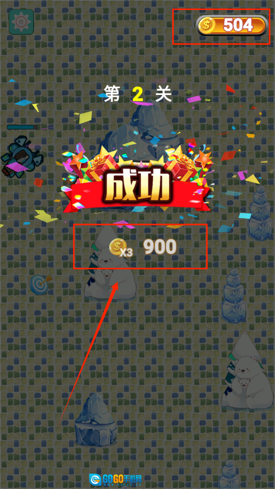 每通过一个关卡挑战都能得到金币奖励,右上角显示的是你累计获得的金币数量。