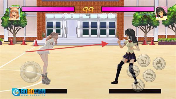 在格斗对战玩法中,玩家需要操控自己选定的角色,在操场场景里通过虚拟摇杆来控制移动方向,同时点击界面上的技能按钮,以此对对手发起攻击,逐步消耗对方的血量。