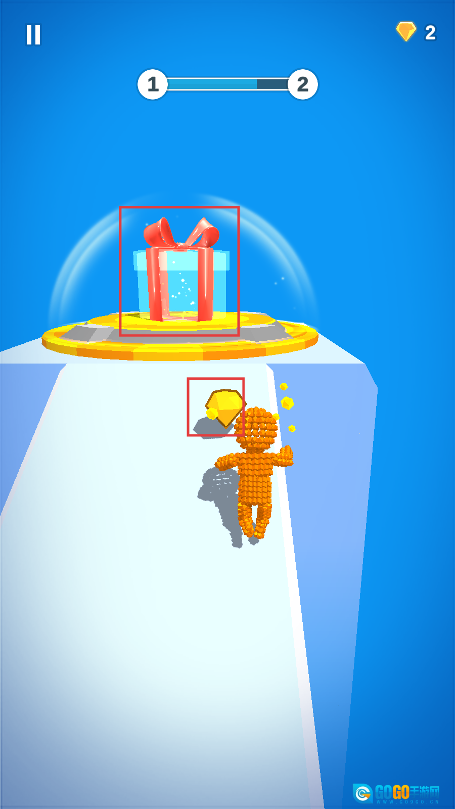 带领像素小人收集路上的钻石,再靠近终点的礼物盒,打开瞧瞧里面藏着什么惊喜吧。