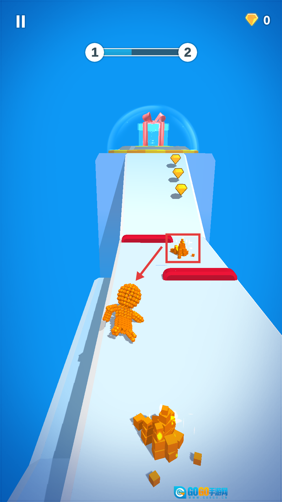 当像素人撞到障碍物时,会有部分身体掉落,我们得赶紧捡起地上的像素碎片来修复身体,可别让它被彻底撞碎了!