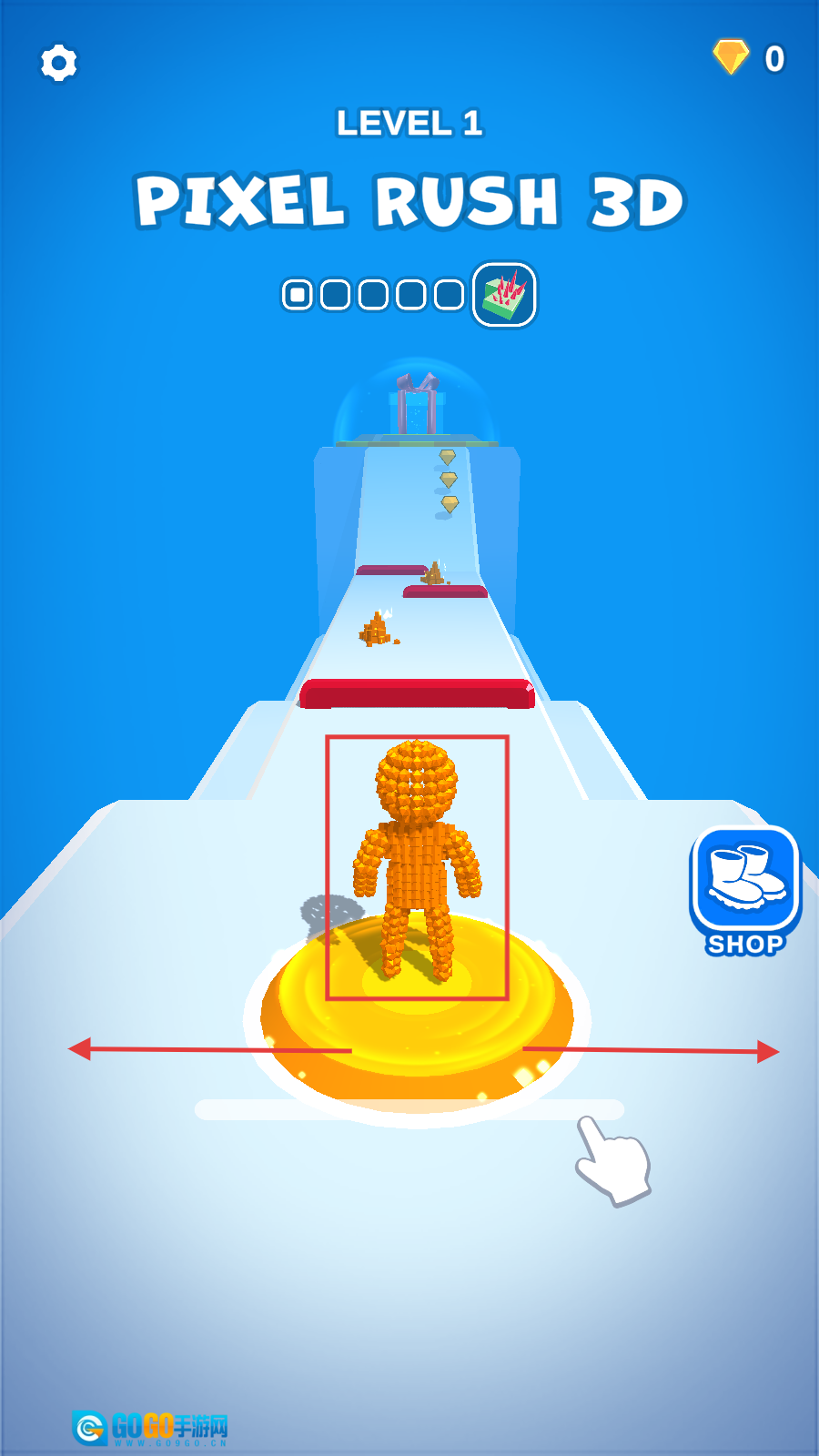 进入游戏后,通过左右滑动屏幕来调整像素人的前进方向,准备好开启跑酷闯关之旅吧。