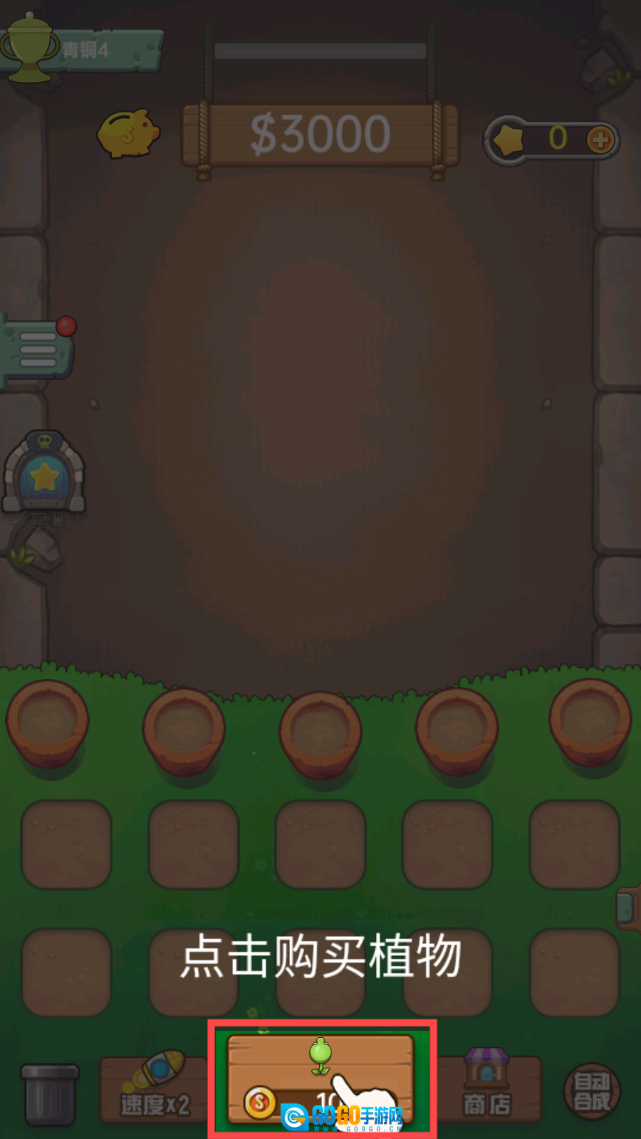 进入游戏后,点击底部带有金币标识的植物图标,花费金币购买基础植物,以此为抵御丧尸做好准备。