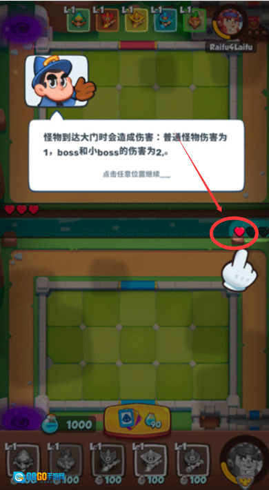 当怪物抵达大门位置时,玩家会对其造成伤害;其中,普通怪物所受伤害值为1,而boss与小boss的伤害值则为2。